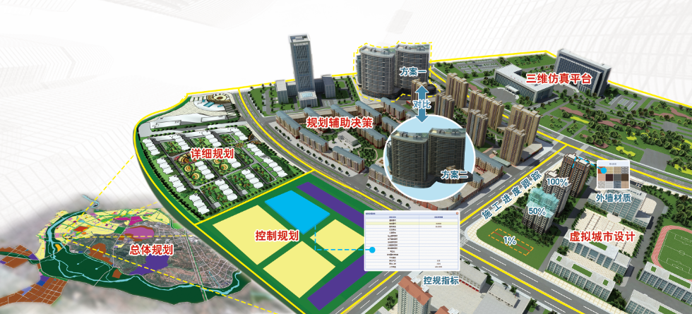城市規(guī)劃管理系統(tǒng)利用三維地理信息平臺,結合規(guī)劃管理實際情況,通過將規(guī)劃相關空間信息和文檔信息緊密結合,形成集地理信息,辦公圖文信息、規(guī)劃信息等各種信息于一體的信息化平臺。該系統(tǒng)由規(guī)劃管理、規(guī)劃展示、規(guī)劃輔助決策、規(guī)劃檔案、規(guī)劃審批、虛擬城市設計、三維仿真平臺構成。各模塊既可以相互獨立又可以有機的集成在一起,構成了全面的規(guī)劃管理信息化建設解決方案。