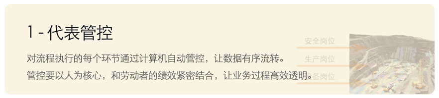 《智慧礦山集成平臺》是以“43211”理論為基礎,通過對人、設備、對象的分析、管理,把整個企業的所有活動劃分到對每一個人的全面管理,即把員工的本身屬性、工作、廠內生活等生部整合,從職工每日入廠簽到到離開工廠完成一天工作的全部過程數字化管理。通過制度進行約束,形成企業對員工全方位的管控,實現透明化生產、扁平化管理、優化生產流程,降低經營成本,提高生產效率,進而打造一個生產智能化、管理智慧化的現代化礦山。