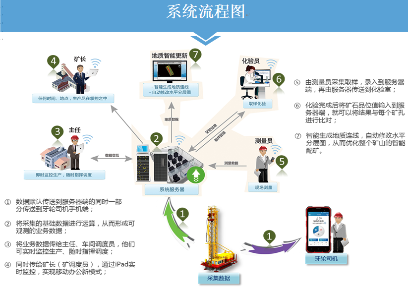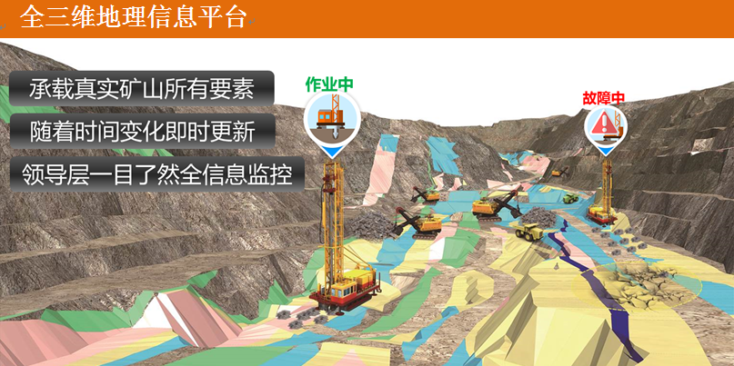 基于“43211”理論的《聚進牙輪生產智能管控系統》以聚進露天三維采礦綜合信息系統為基礎,引進高精度智能測量設備,提高測量精度,數據采集及時準確,極大提高生產工作效率。徹底解決礦山測量人手不足,戶外測量工作量大的頑固難題,極大提高測量數據的單位采集率,建立公司級數據應用交換平臺,支持數據和圖像同時傳輸,地質模型實時更新、資源信息遠程共享,實現過程控制數字化,可使操作者直觀立體地感知生產過程及現場狀況